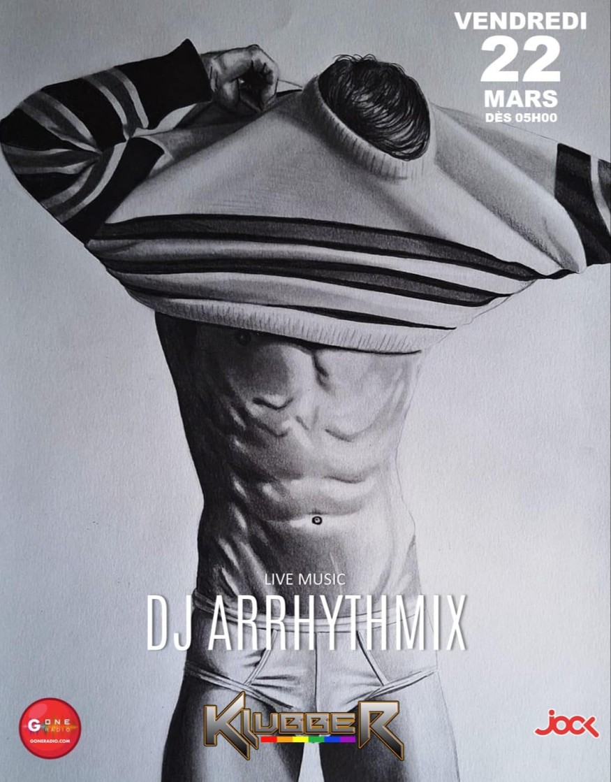 Vendredi matin, on commence la semaine avec DJ ARRHYTHMIX qui viendra mixer au Klubber dès 05h00 du mat pour un set Techno & House. Venez-vous chauffer sur la piste de danse, le podium, la backroom, ….!!!