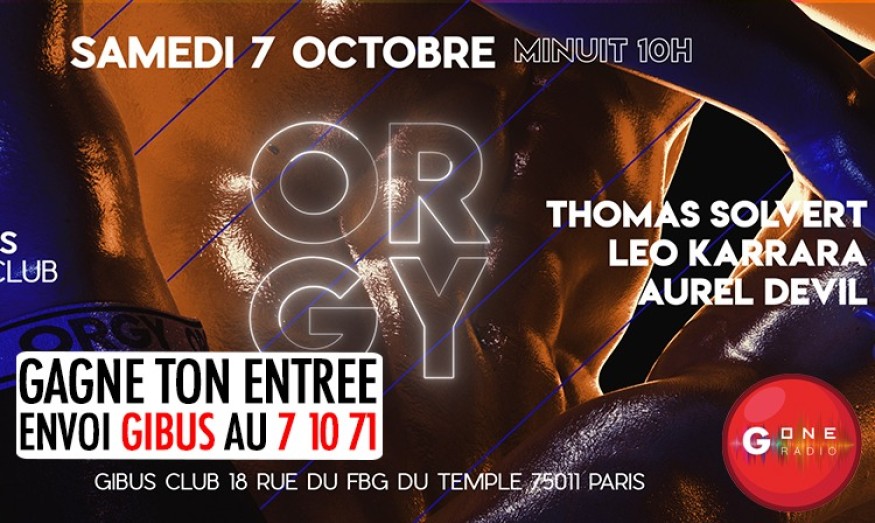 G One en partenariat avec le Gibus Club, vous fait remporter votre entrée pour Ton ORGY mensuelle le samedi 7 octobre de minuit à... 10h !