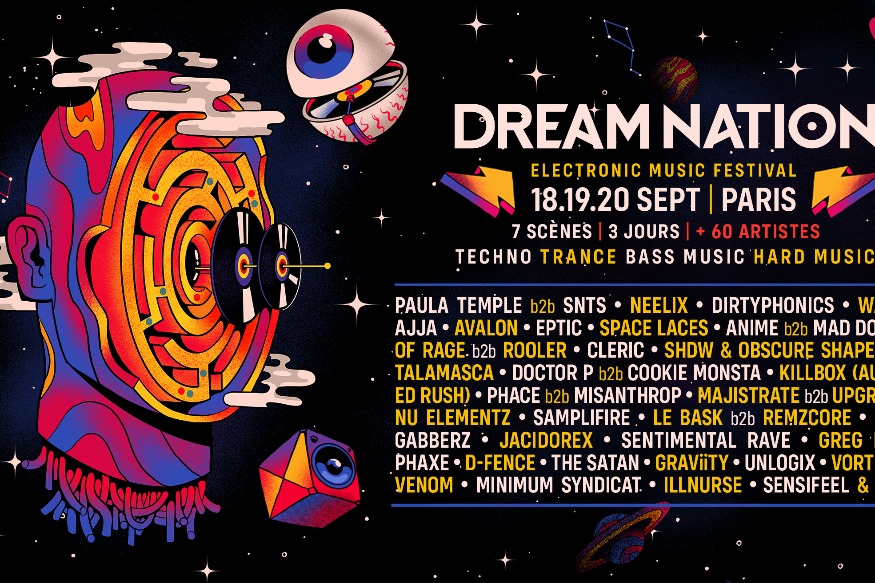 Vitrine de la musique électronique en France, le Festival Dream Nation revient à Paris du 18 au 20 septembre. Cette année, plus de 60 artistes, représentant une palette toujours plus large de la famille des musiques électroniques, se relaieront sur7 scènes pour faire danser des milliers de festivaliers. Pendant 3 jours, la capitale va trembler au rythme de la Techno, le Trance, le Bass Music et la Hard Music !En prévision de ce week-end de fête, voici un petit tour d’horizon de la programmation avec la playlist du festival.