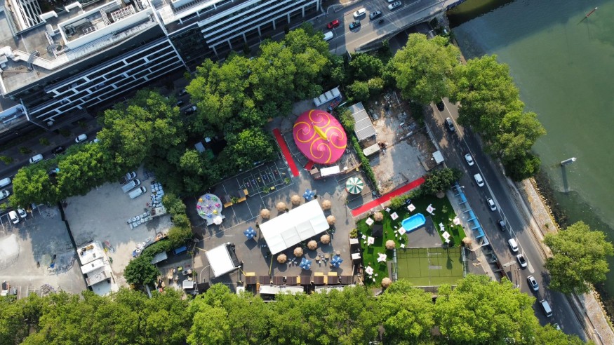 Ce nouveau terrain de jeu est composé de deux scènes : une première en extérieur et une seconde sous le chapiteau. Une installation agrémentée avec de multiples bars, coins chill, balançoires, mais aussi un terrain de beach volley, une piscine et ses manèges… De quoi réinventer la fête et devenir un nouveau lieu de rendez-vous incontournable de la scène parisienne !