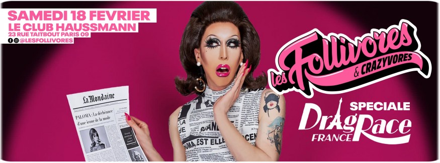 A l'occasion de la dernière de la tournée de Drag Race France, Les Follivores vous ont concocté une soirée pour célébrer cette émission devenue culte ! Au programme Paloma bien entendu, grande gagnante de la Saison 1 française, mais également une "special guest" que nous vous dévoilerons dans quelques jours... des idées ?