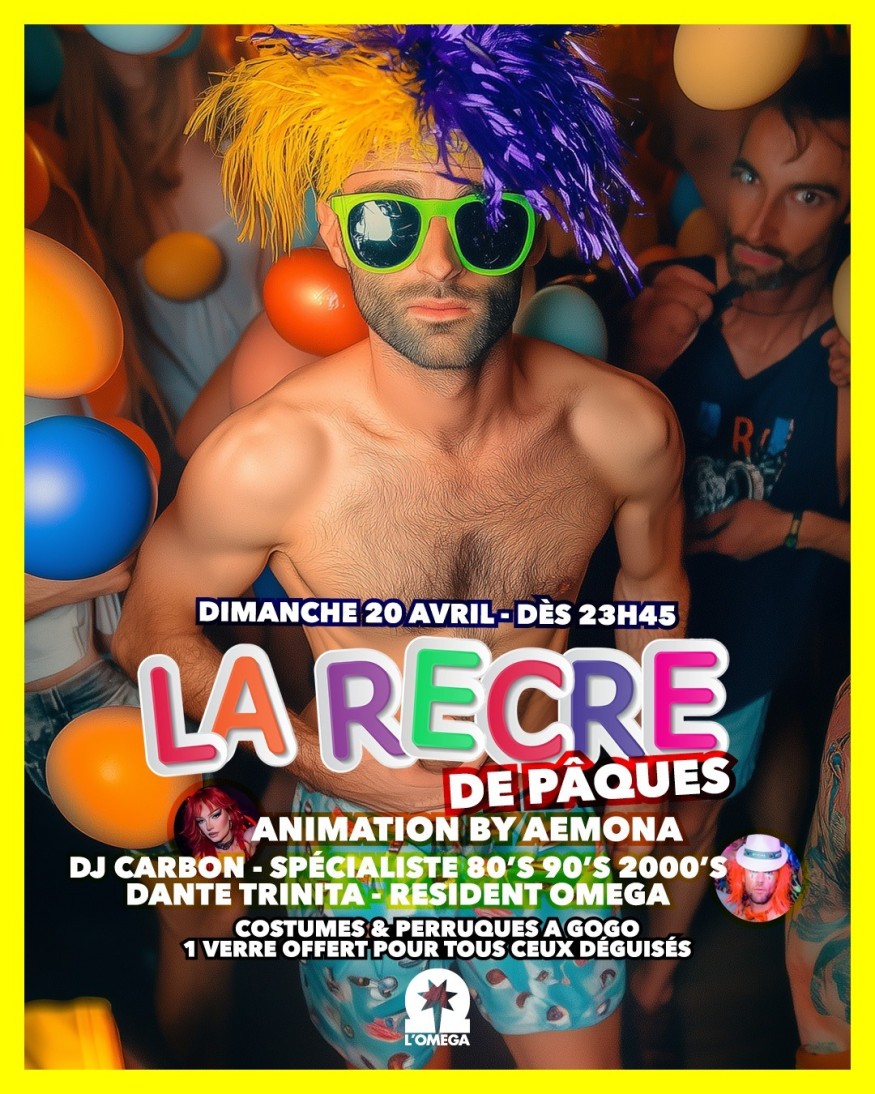 Au programme vos tubes préférés, et votre club adoré totalement relooké en mode EASTER !! Avec DJ CARBON et DJ DANTE TRINITA aux platines et la team complètement déjantée version EASTER RÉCRÉ !!