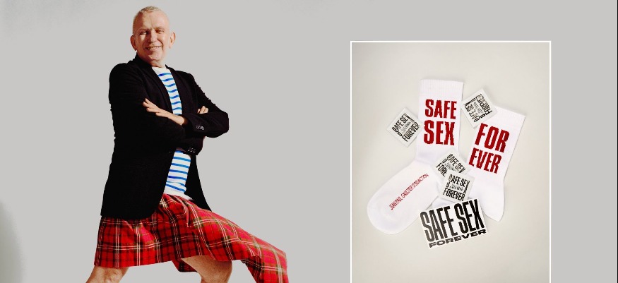 Jean Paul Gaultier est un fidèle du Sidaction et de la lutte contre le sida. Il a d’ailleurs été nommé ambassadeur de l’association en juin 2020. Pour cette édition 2021 qui se déroule ce week-end, le créateur de mode renouvelle son engagement en proposant une paire de chaussettes collector « Safe Sex For Ever », dont l’intégralité des bénéfices sera reversée au Sidaction. Cette paire de chaussettes est un clin d’œil à sa collection printemps-été 1996, dans laquelle il avait présenté un top affichant le même message. Ce message est un rappel au combat personnel que mène Jean Paul Gaultier depuis le début de sa carrière.
