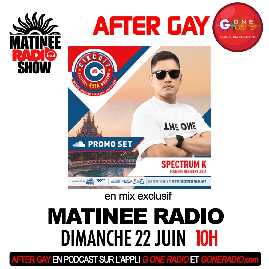 Réécoutez After Gay G One invite les soirées Matinée Group avec Spectrum du dimanche 22 juin 2025.