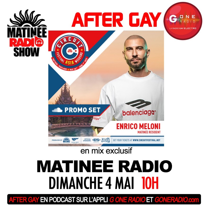 Réécoutez After Gay G One invite les soirées Matinée Group avec Enrico Meloni du dimanche 4 mai 2025.